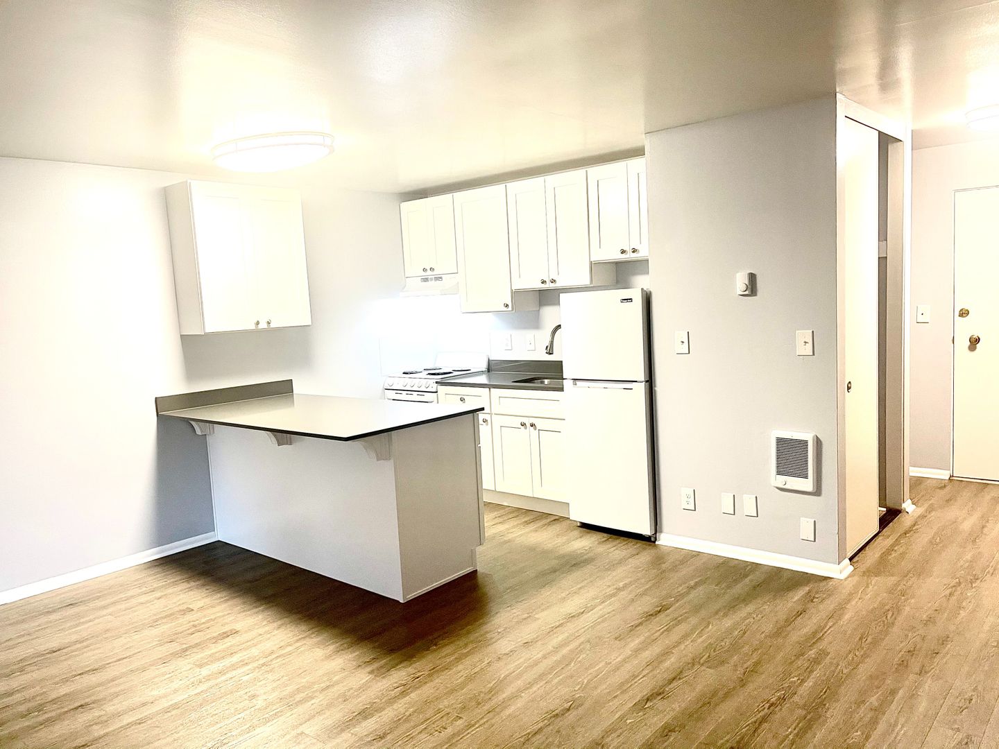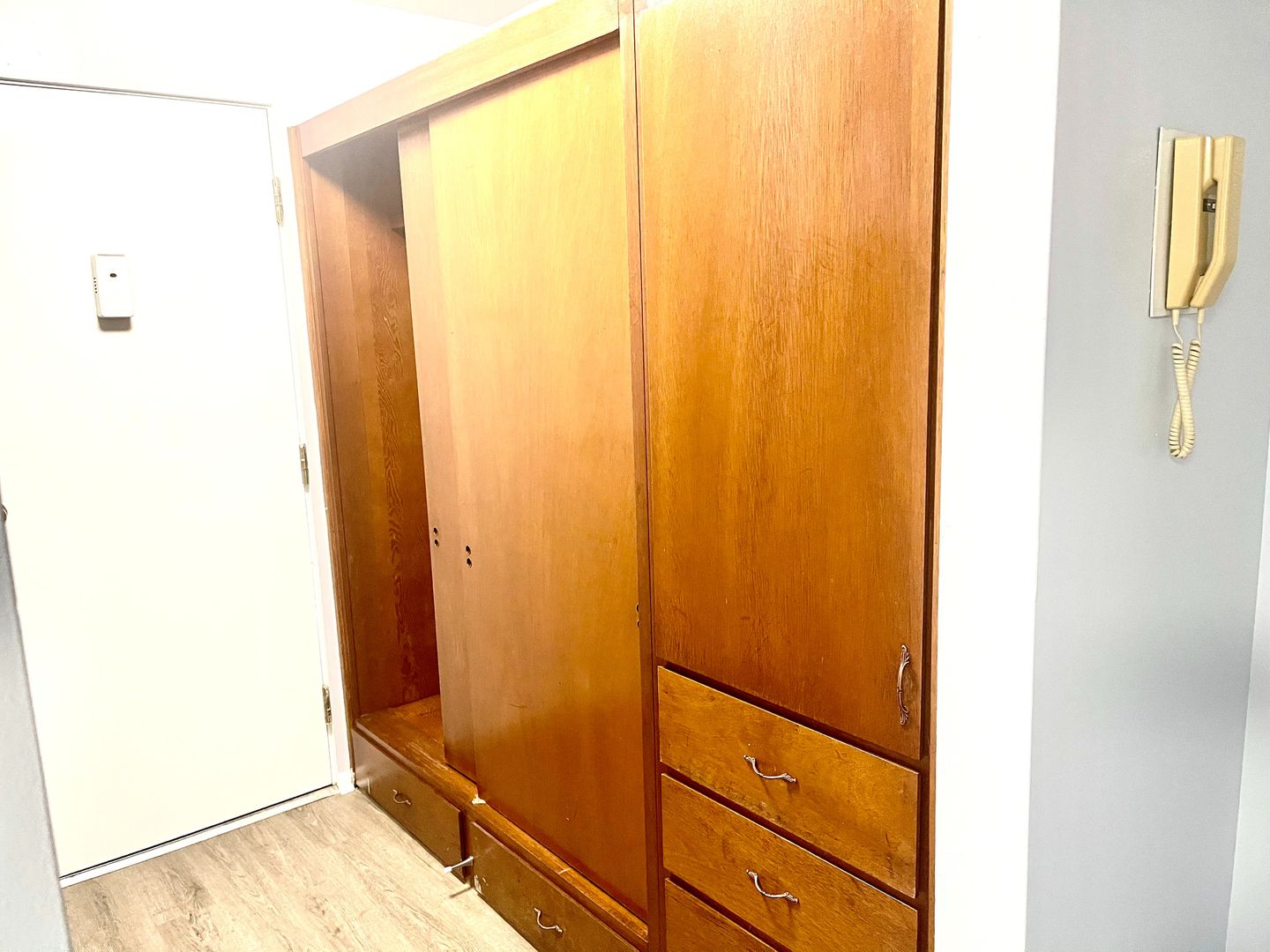 This gorgeous West facing studio with a full bathroom comes updated with soft gray walls and plank flooring from wall to wall. Large windows that carry light throughout the whole unit. Along with a built-in amour for extra storage.